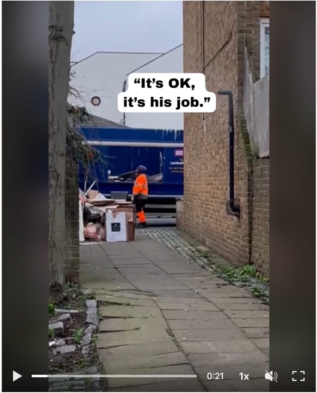 Rather than booking a bulky waste collection with the council, if you’re on an estate, you get a designated area to leave all the stuff that’s too big for your bin and a council caged truck turns up like clockwork and magics it away.