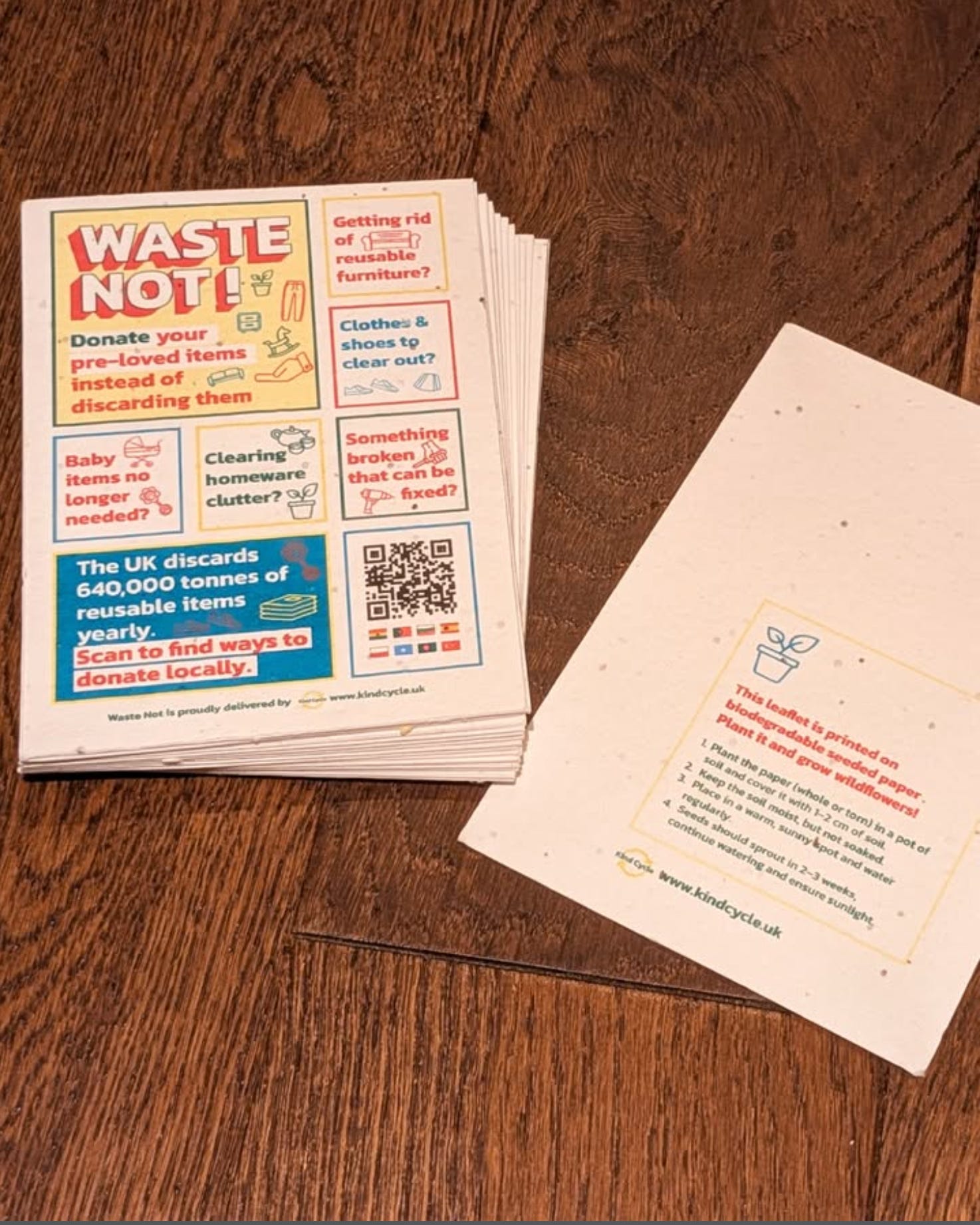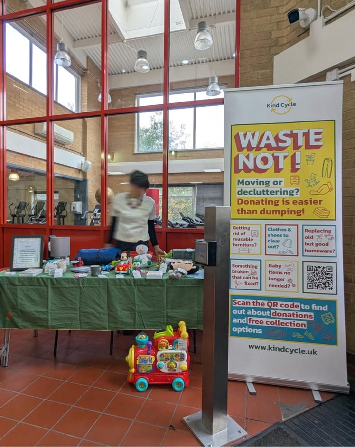 Photo: Kindcycle on Instagram @kind.cycle.uk The leaflets and signage at the event included a QR code to join a dormant-since-Covid estate WhatsApp group where residents could share details of something they wanted to offload and offer it first to neighbours. This WhatsApp, they report, has now become incredibly active, with neighbours regularly donating and exchanging items.